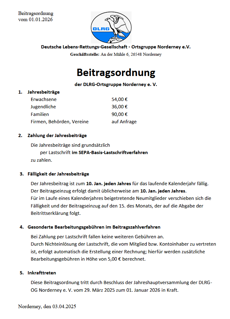 Vollständige Liste der Ansprechpartner der DLRG Ortsgruppe Norderney e.V. findest du hier .