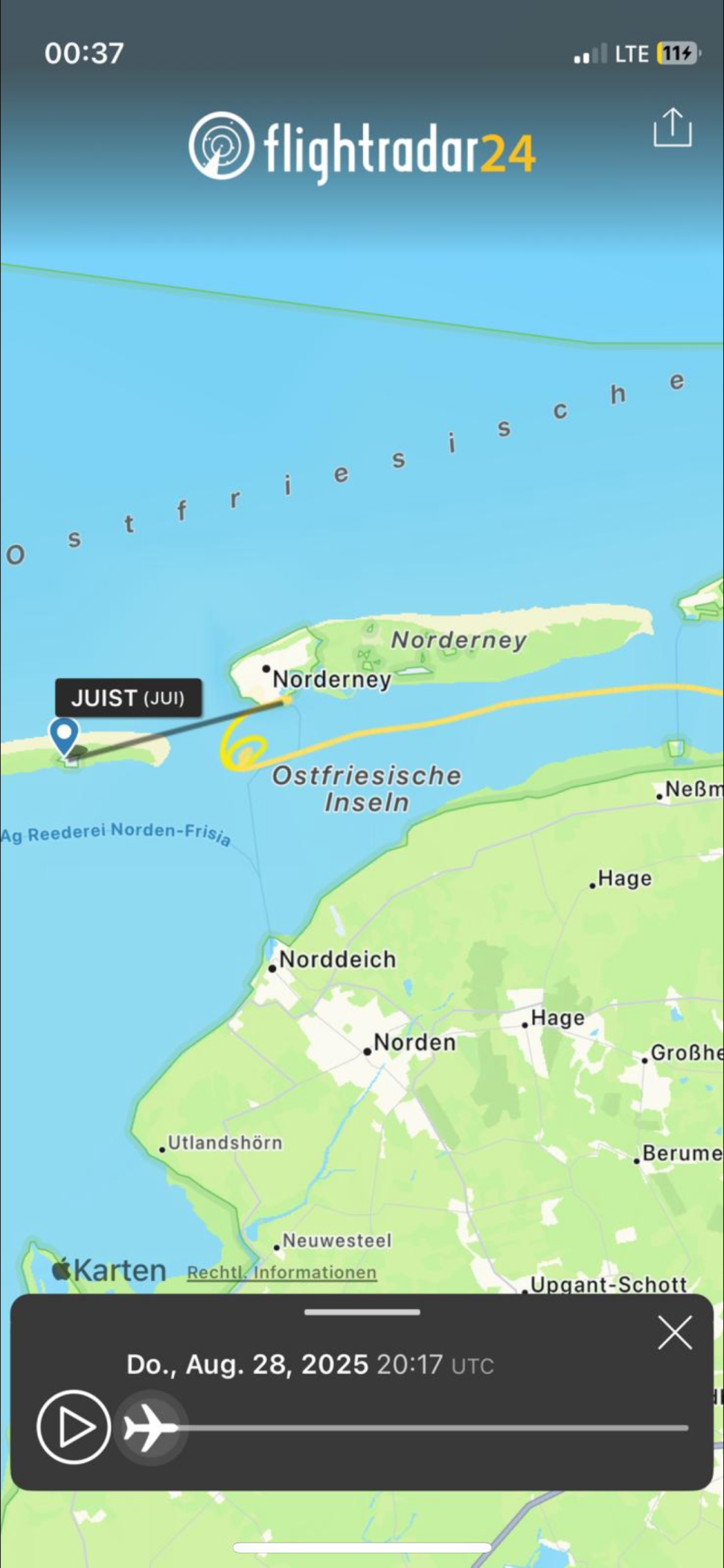 Am Donnerstag, 28.08.2025, um 21:14 Uhr wurde die DLRG Norderney, die zu diesem Zeitpunkt eigentlich das Benefizkonzert der Bundeswehr-Bigband im Inselhafen wasserseitig absicherte, zu einem medizinischen Notfall an Bord einer zwischen der Insel Norderney und dem Festland auf einer Sandbank havarierten Segelyacht alarmiert. Gemeldet wurde ein verletzter Skipper, der sich in hilfloser Lage unter Deck seiner Yacht befindet. Mit dem DLRG-Wachboot "Kiek Ut" und in Begleitung durch den Seenotrettungskreuzer "Eugen" der DGzRS-Station Norderney wurde die gemeldete Position der Segelyacht angelaufen. Während sich das DLRG-Wachboot, das über einen nur geringen Tiefgang verfügt, langsam dem Havaristen annäherte, leuchtete die "Eugen" die Einsatzstelle aus der Ferne bestmöglich aus. An einer Sandkante konnten schließlich fünf Besatzungsmitglieder der DLRG abgesetzt werden, die sich zu Fuß auf den Weg zum Havaristen machten. Dessen Skipper hatte es nach einem Sturz von Bord mit letzter Kraft wieder zurück auf sein Schiff geschafft, wo er jetzt jedoch in einem nur schwer zugänglichen Bereich unter Deck mit starken Schmerzen im HWS- und Schulterbereich ausharrte. Da ein Transport des Patienten unter diesen Voraussetzungen nicht möglich war, wurde in Rücksprache mit der "Leitstelle" der Rettungshubschrauber Christoph 26 angefordert, der kurze Zeit später ein zweiköpfiges Notarztteam auf der Sandbank absetzte und danach am Molenkopf auf Norderney in Wartebereitschaft zwischenlandete. Unter Schmerzmedikation und mit vereinten Kräften gelang es schließlich, den Patienten an Deck und von Bord zu schaffen. In der Zwischenzeit war die Tide gekippt und das auflaufende Wasser stieg bedrohlich schnell an. In sprichwörtlich letzter Minute konnte der Patient in den nochmals kurz gelandeten Rettungshubschrauber verladen und zur Weiterversorgung in ein Krankenhaus auf dem Festland geflogen werden. Wir bedanken uns bei den Besatzungen der Rettungskreuzer "Eugen" und „Otto Diersch" sowie dem Team von „Christoph 26“ für die gute Zusammenarbeit und die Koordination vor Ort. Um kurz nach Mitternacht konnte der rund dreistündige Einsatz für die sechsköpfige Besatzung der DLRG Norderney erfolgreich beendet werden.